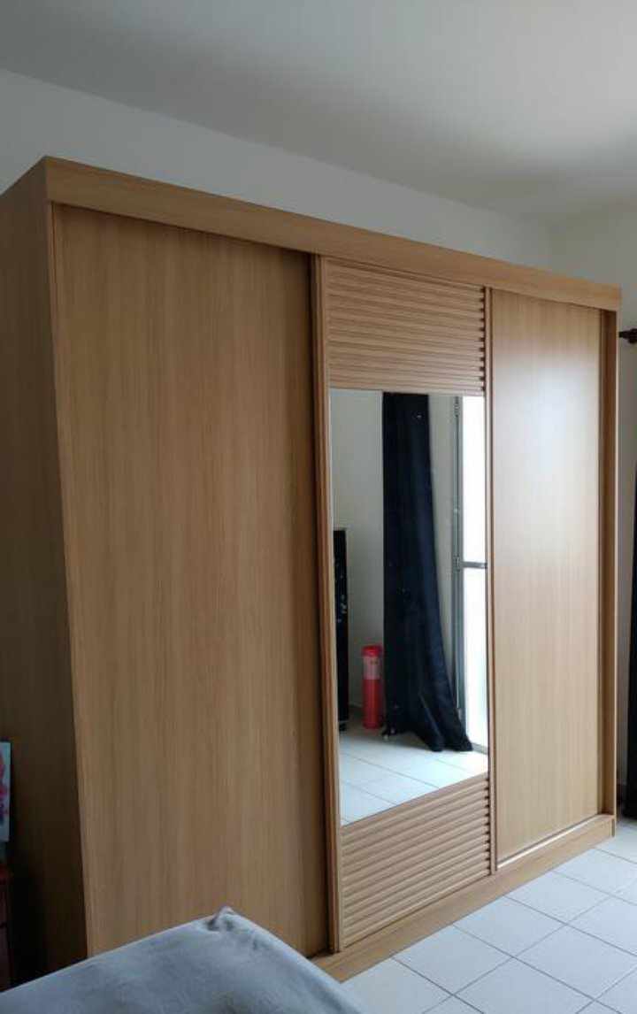 دولاب Carvalho42 بأبواب سحب، إصدار المرآة – تصميم أنيق بمرآة بطول الباب الأوسط، مقاس 242×58×235 سم، خشب كونتر طبيعي، ضمان 10 سنوات.