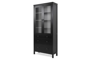 وحدة عرض زجاجية – عرض 80 سم، عمق 40 سم، ارتفاع 200 سم – تصميم عملي بلون خشبي وأبيض، أبواب زجاجية مزدوجة، مصنوعة من خشب كونتر طبيعي، بضمان 10 سنوات.