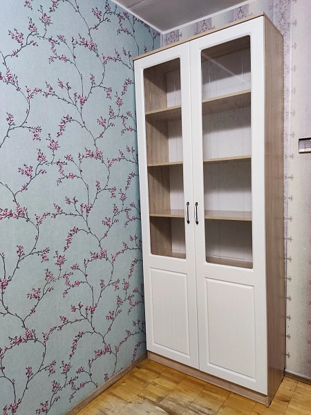 🎨 اللون: الهيكل خشبي فاتح – الأبواب بيضاء بزجاج مزخرف