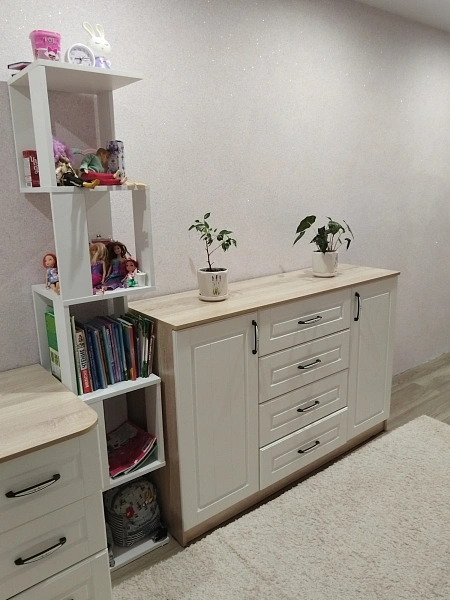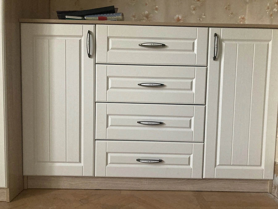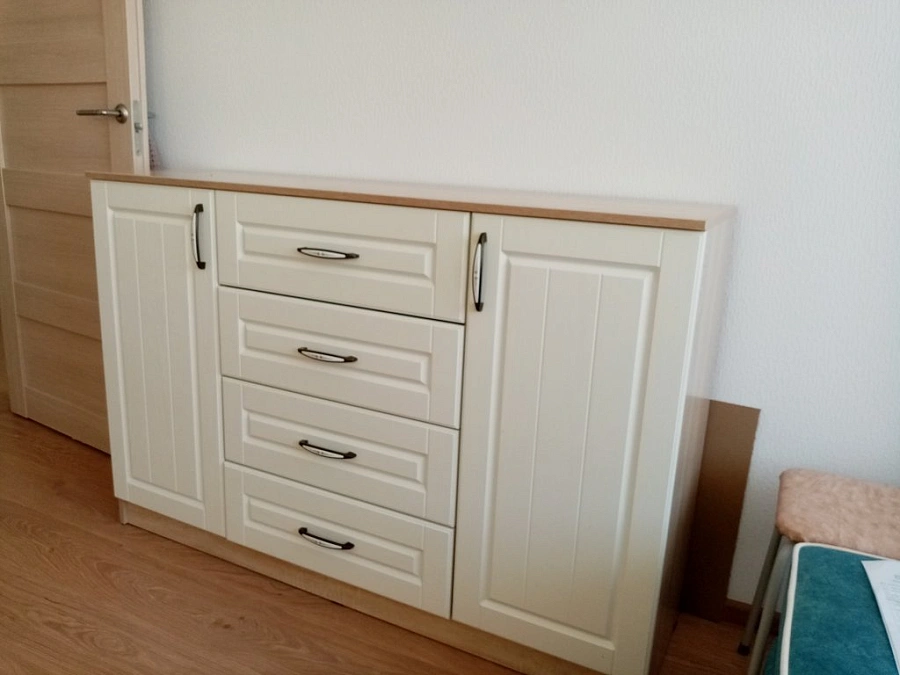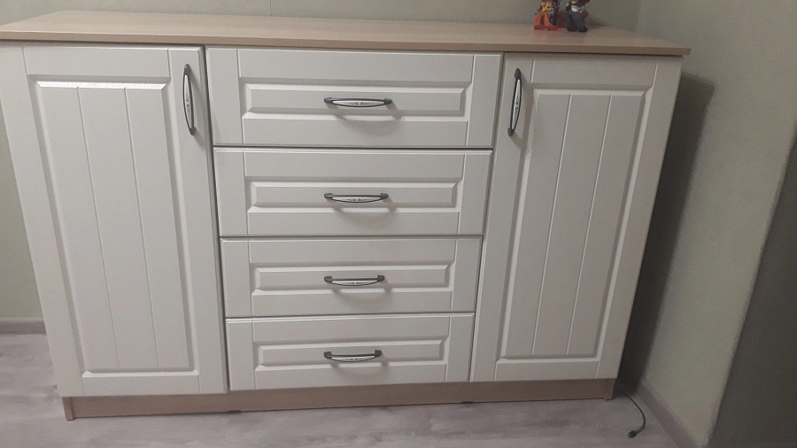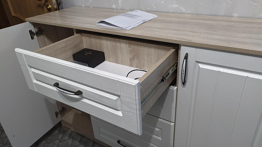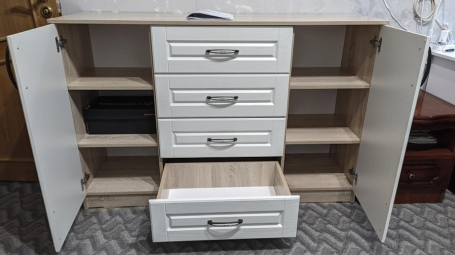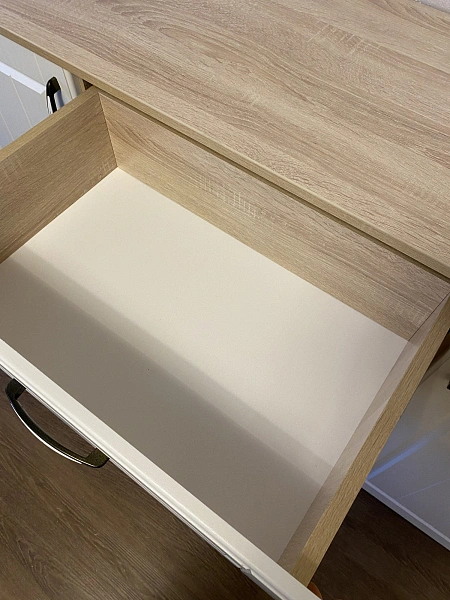 🎨 اللون: الهيكل خشبي فاتح – واجهات الأدراج والأبواب بيضاء