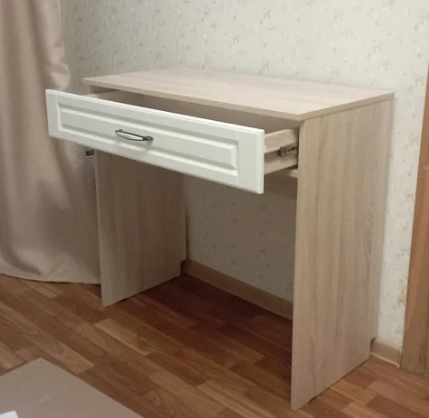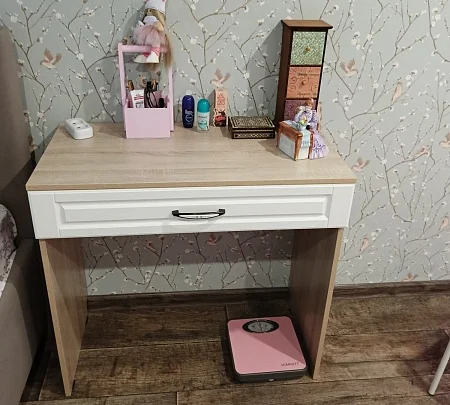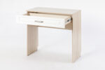 تسريحة جانبية بدرج واحد – عرض 85 سم، عمق 42 سم، ارتفاع 80 سم – تصميم عملي بلون خشبي وأبيض، مصنوعة من خشب كونتر طبيعي، بضمان 10 سنوات.