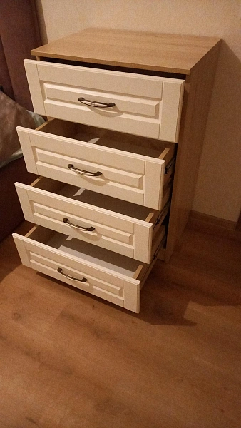 🎨 اللون: الهيكل خشبي فاتح – واجهات الأدراج بيضاء