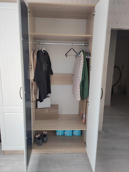 - الجهة اليسرى: رف علوي+ عمود تعليق واسع + ورف سفلي