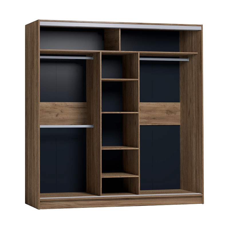 دولاب عصري بثلاث ضلف بأبواب جرّار، مصمّم لتوفير أقصى قدر من التنظيم الداخلي بدون التضحية بالمظهر الخارجي. يتميّز بتقسيمة عملية يناسب مختلف الأساليب العصرية.