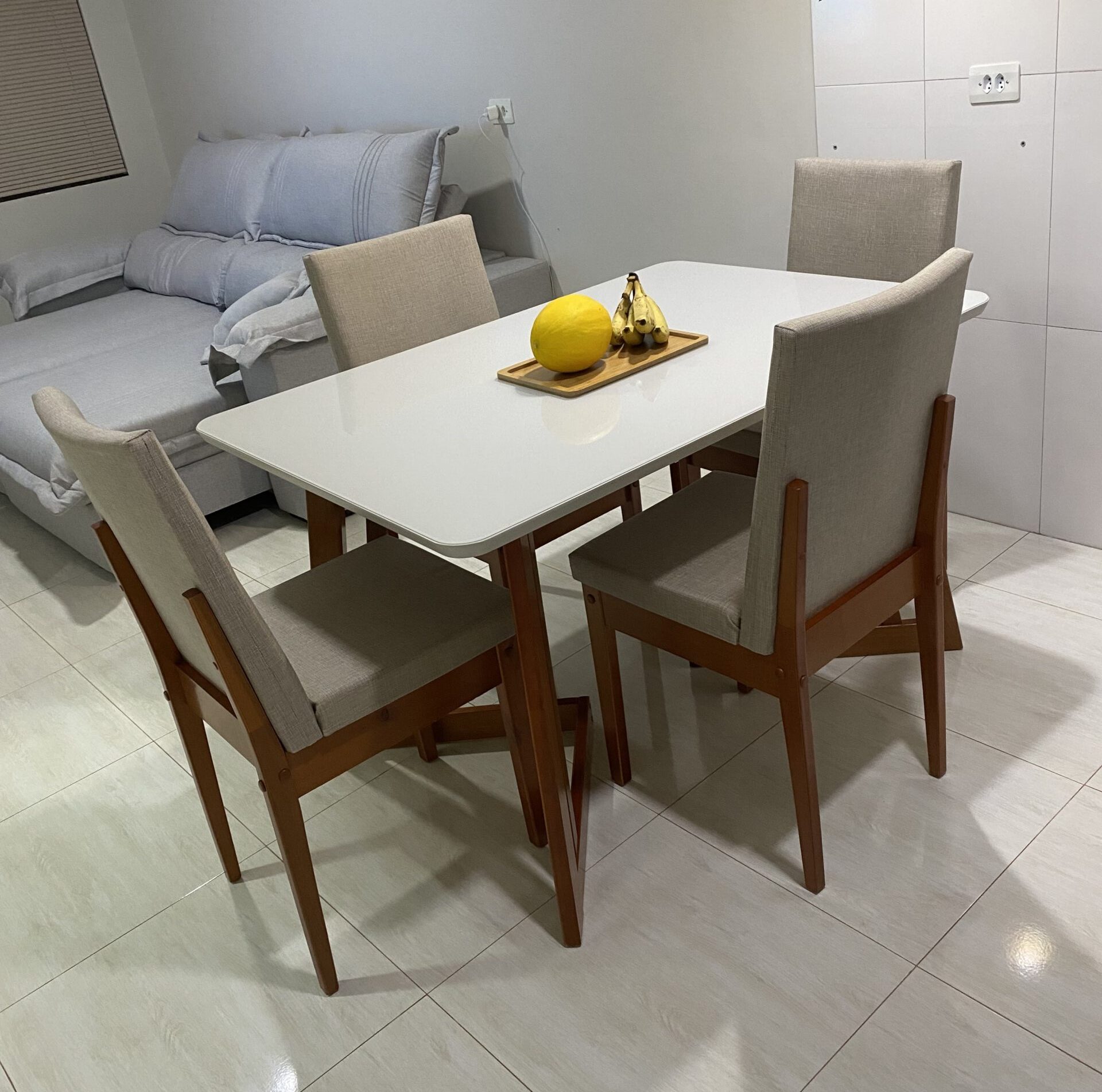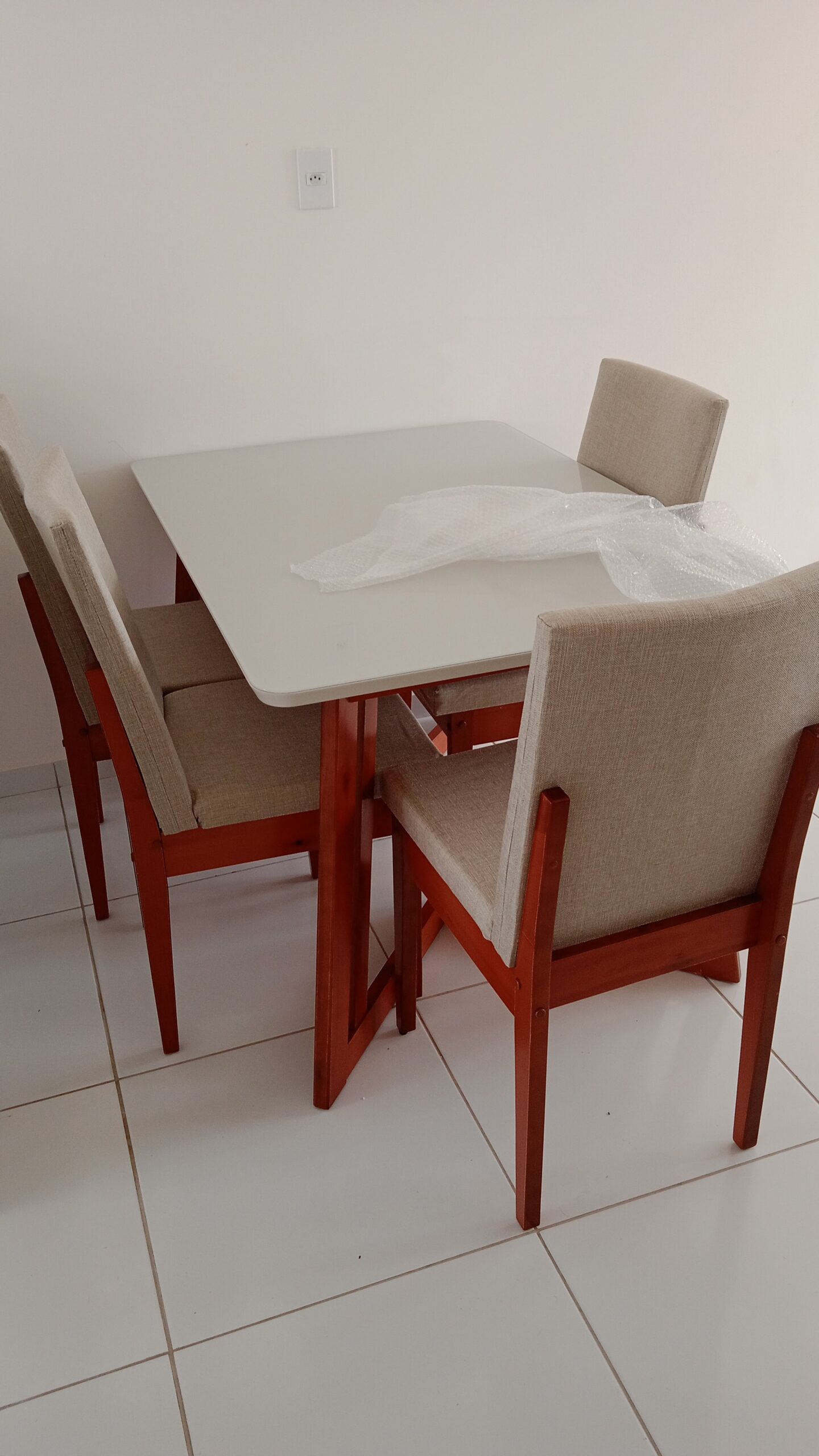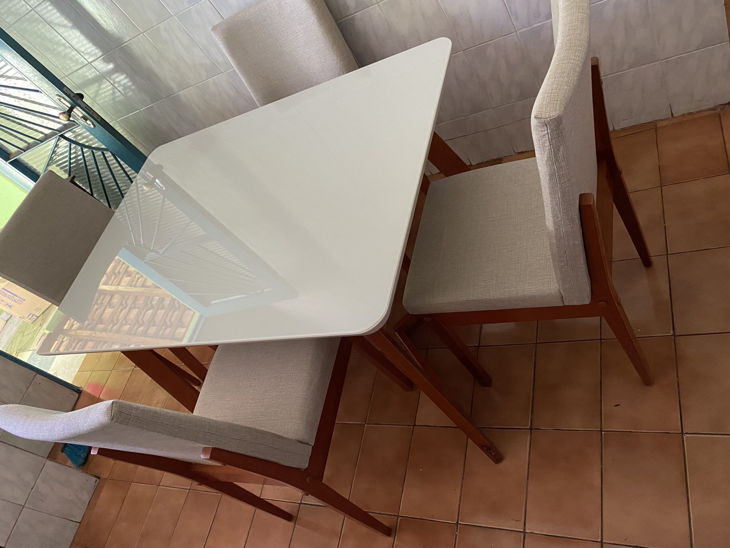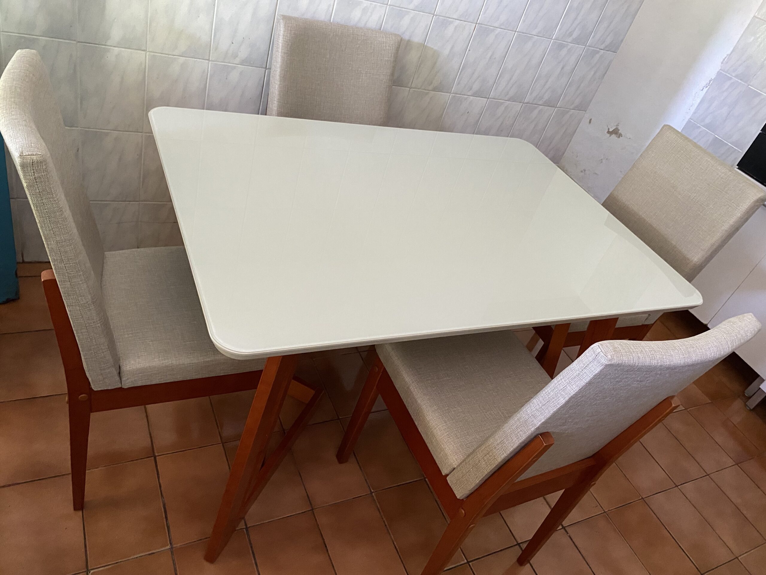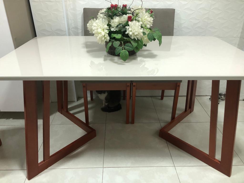 الترابيزة بمقاس طول 160 × عرض 90 × ارتفاع 78 سم، مصنوعة من خشب كونتر طبيعي بسطح أملس، ومغطاة بطبقة زجاج شفاف بسمك 8مم للحماية وسهولة التنظيف.  الأرجل من خشب الزان الأحمر الصلب، المعروف بمتانته ومقاومته للاستخدام اليومي.