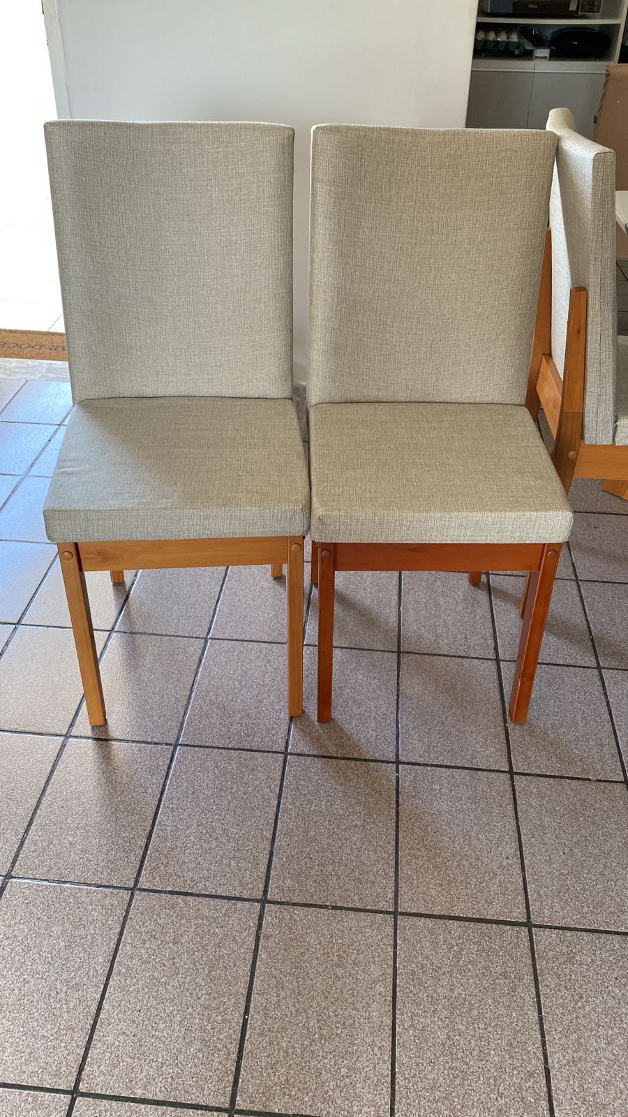 الكراسي بمقاس عرض 44 × عمق 54 × ارتفاع 100 سم، بهيكل من خشب الزان الأحمر، ومبطنة بقماش ووتر بروف، مقاوم للماء والبقع، سهل التنظيف، ويوفر راحة فائقة بفضل تصميمه المريح للظهر والمقعد.