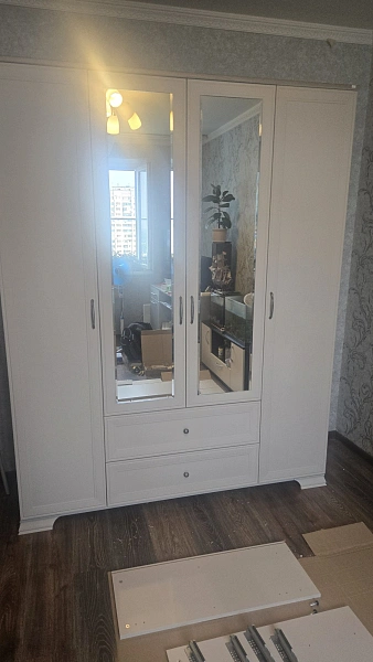 - دولاب Milano180 بمقاس 180×220×56 سم، بتصميم 4 أبواب مفصلي، وتقسيم داخلي إلى 3 جهات: